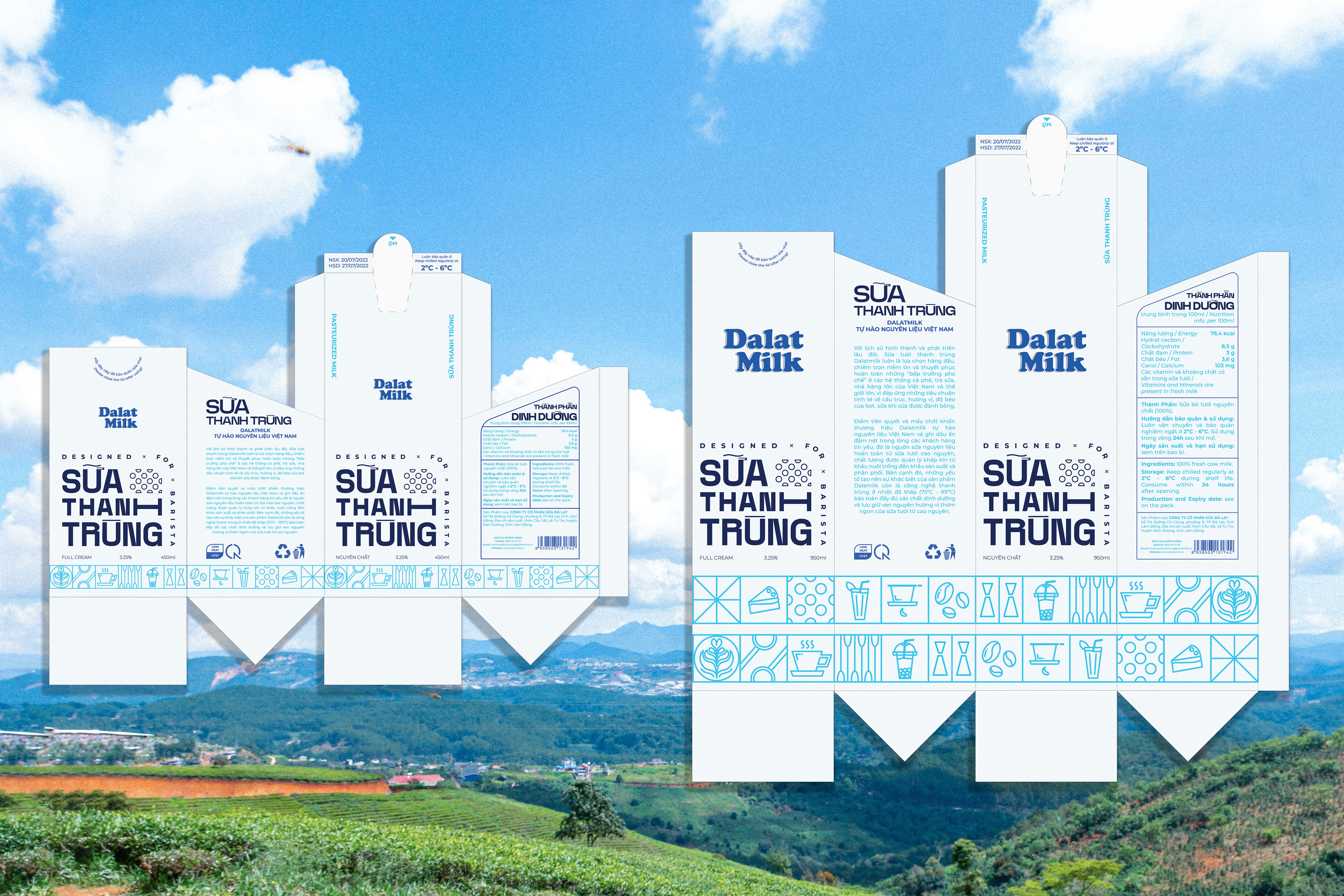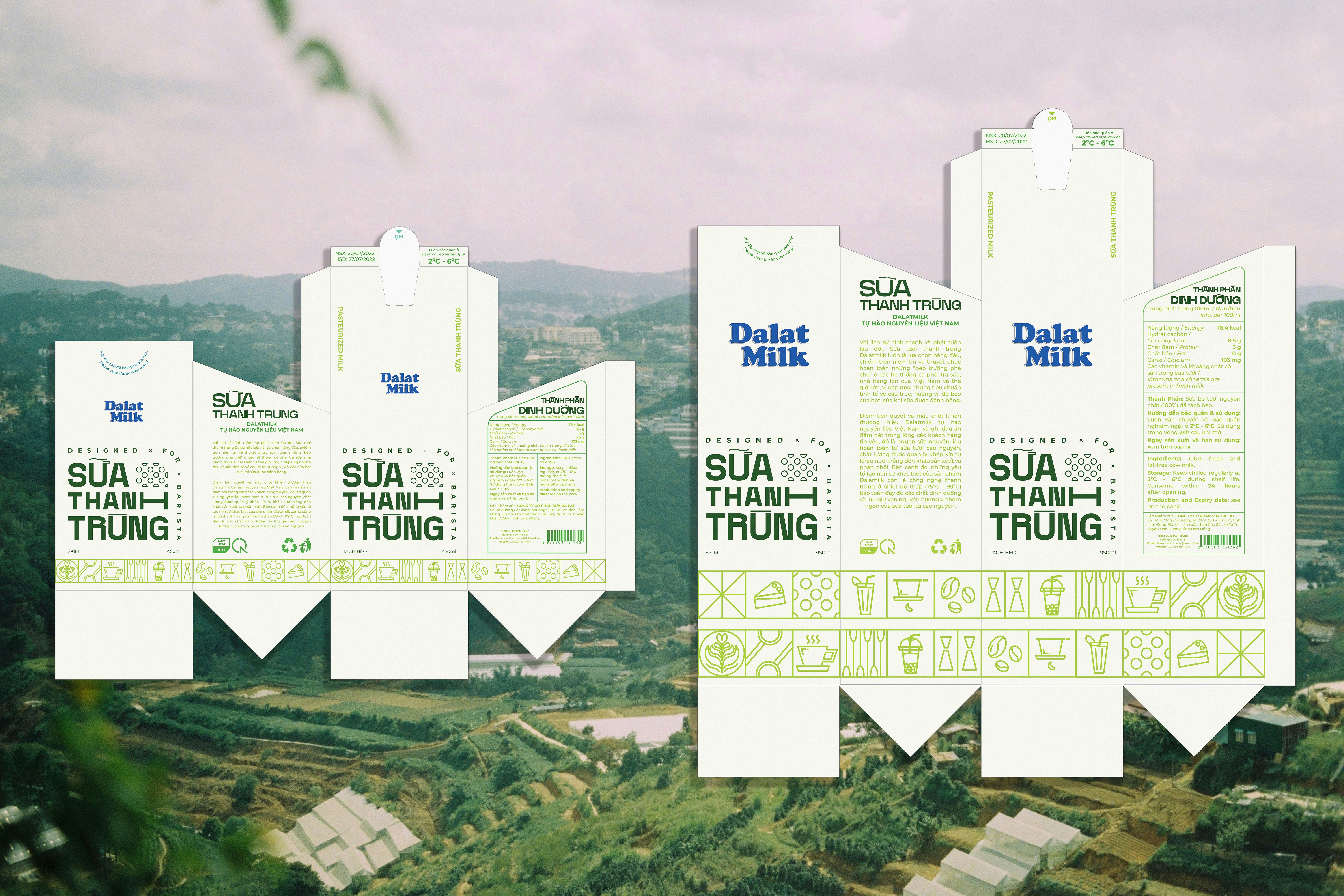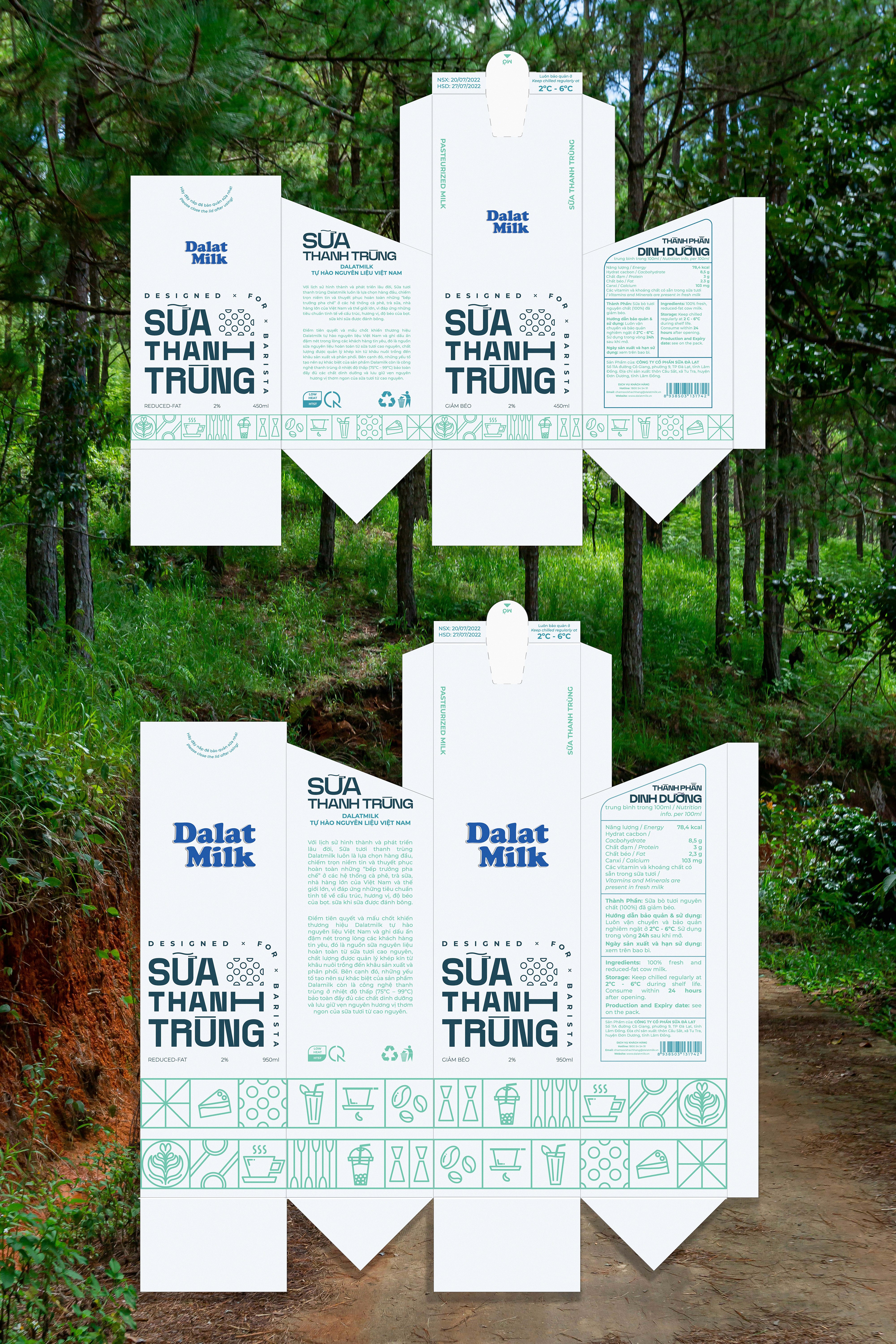 Dalatmilk, though not widely known, impresses those who try it with its high-quality products made from 100% fresh milk from the Lam Dong Highlands. The brand ensures fresh delivery within 24 hours. This project aims to enhance the product experience and improve milk preservation by addressing the functional and aesthetic issues of Dalat milk’s current packaging. Through innovative packaging design, this project honors the baristas and their beverages, and reinforces the commitment to delivering high-quality milk to consumers.