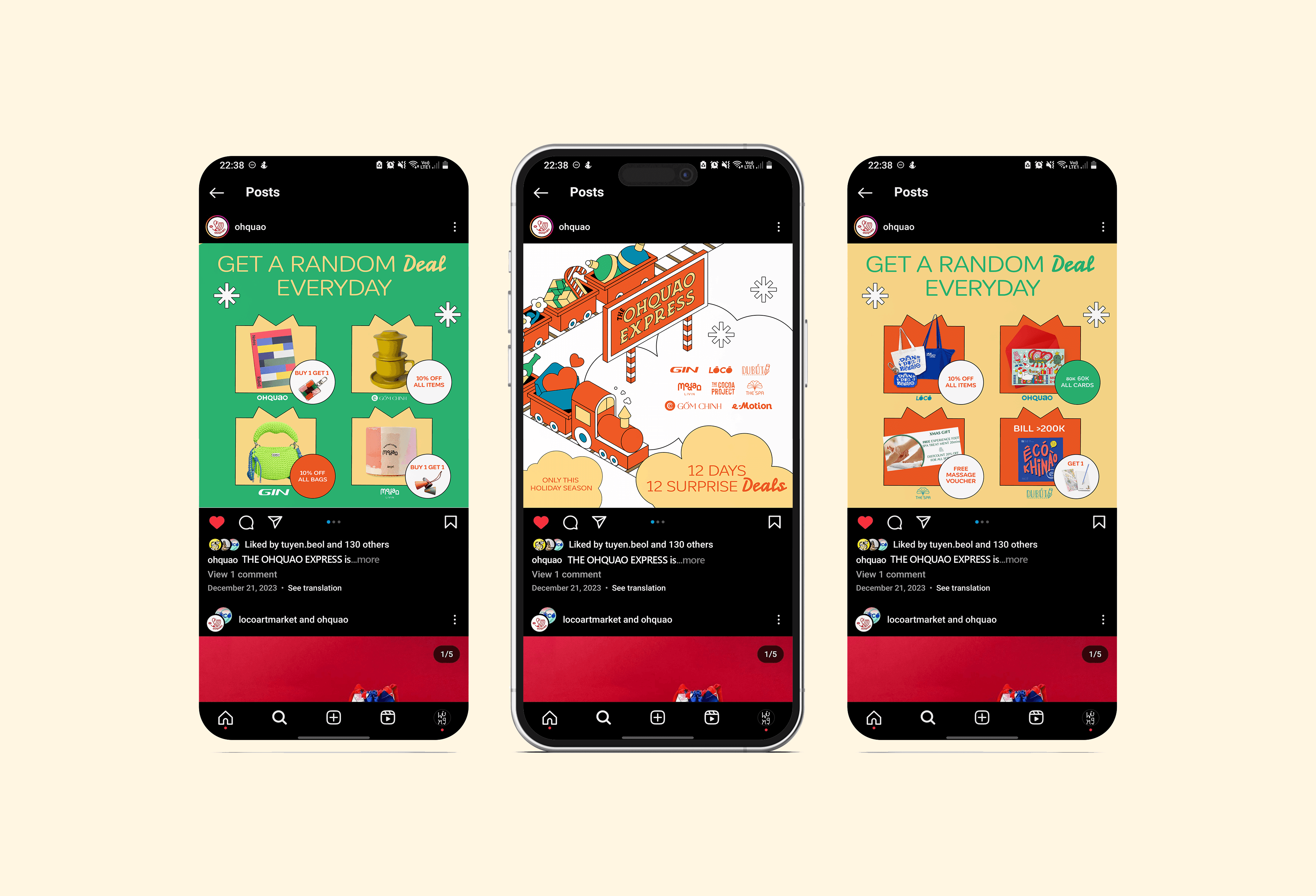 Christmas is coming and the OHQUAO Concept Store needs a new fresh look to promote collaborations between itself and its brands, offering 12 deals in 12 days. Inspired by Advent Calendar theme, the campaign was built based on the concept "the Train dropping a new deal every day in December until Christmas.''