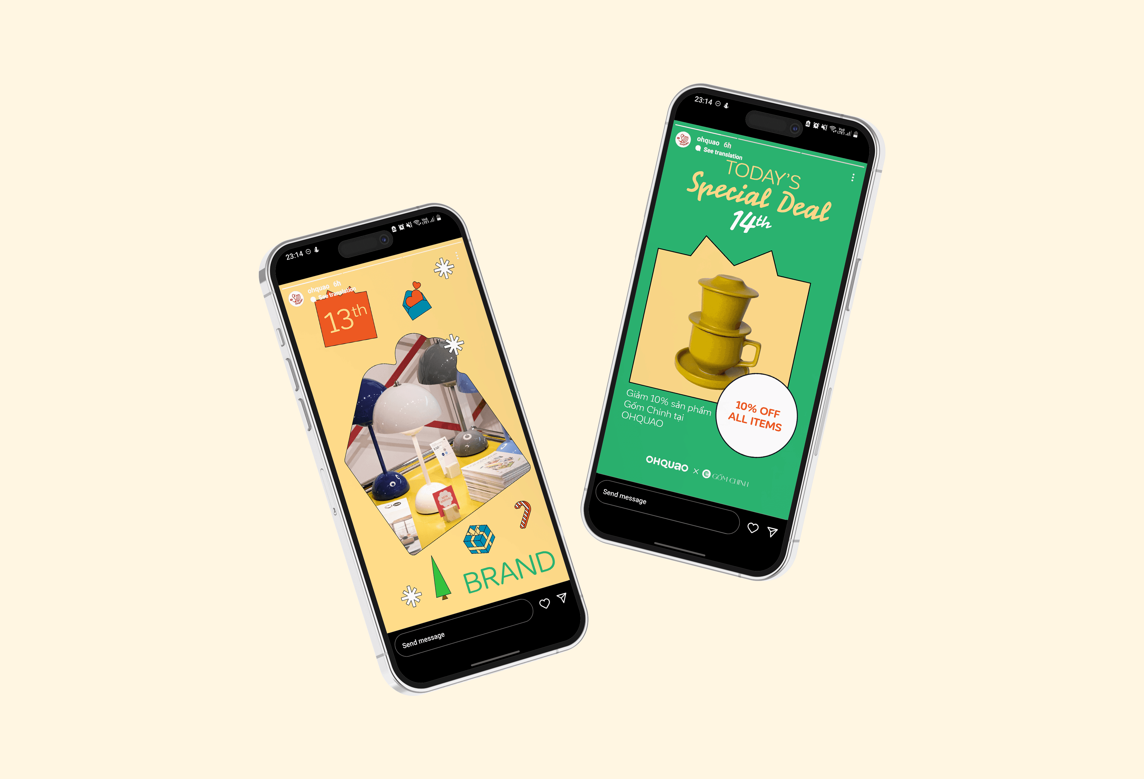 After finalizing the layout, I explored color palettes that align with the campaign’s mood and tone. Based on feedback from my supervisor, Simon Phan, we refined the poster and selected a warm primary palette to convey a festive feel while staying relevant to OHQUAO brand color.